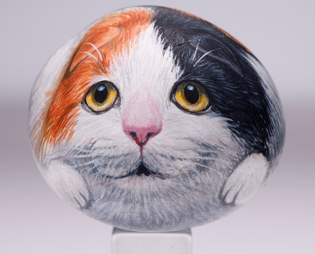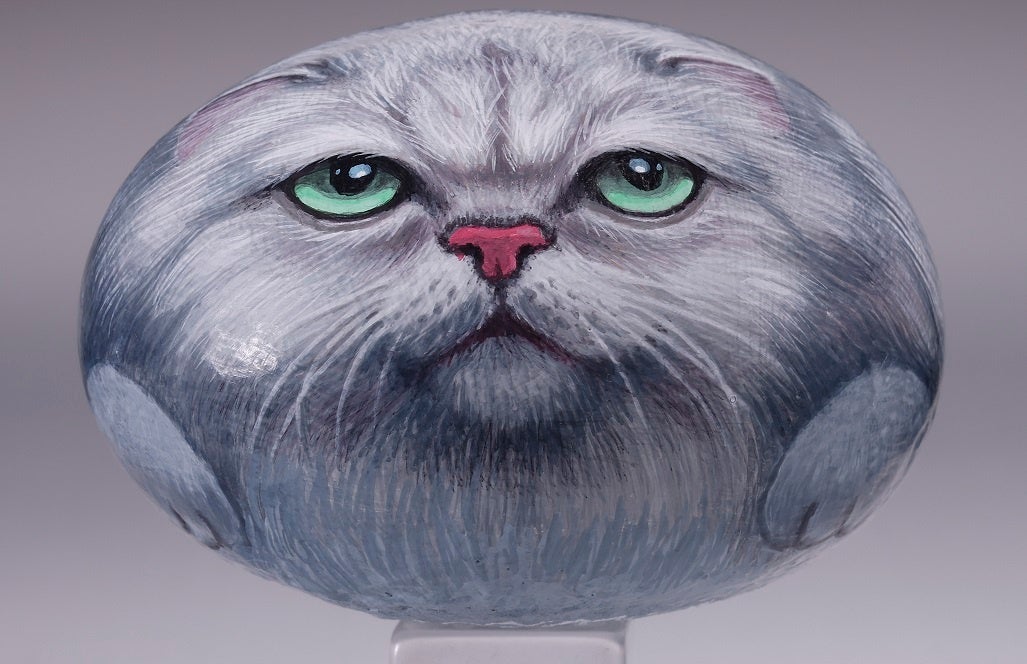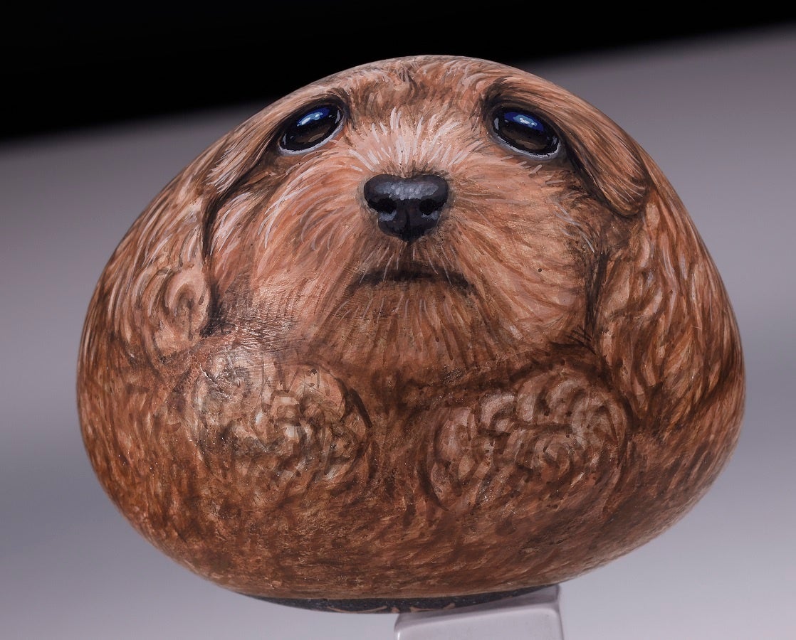 愛くるしい瞳に、もふもふの毛並み。本物の動物のようなこの物体は石に描かれたアート作品。世界中で愛好家が増えている「スト-ンアート」です。ストーンアートとは、自然界で採取した石にアクリル絵の具でペイントを施したもの。今回『小学館百貨店』で販売する作品を手がけたのは、ストーンアートの第一人者・栗屋近(くりやちかし)さん。芸能人や著名人がいろいろな分野で才能を競う人気バラエティー番組『プレバト!!』で、アートの講師を務めるストーンアーティストです。