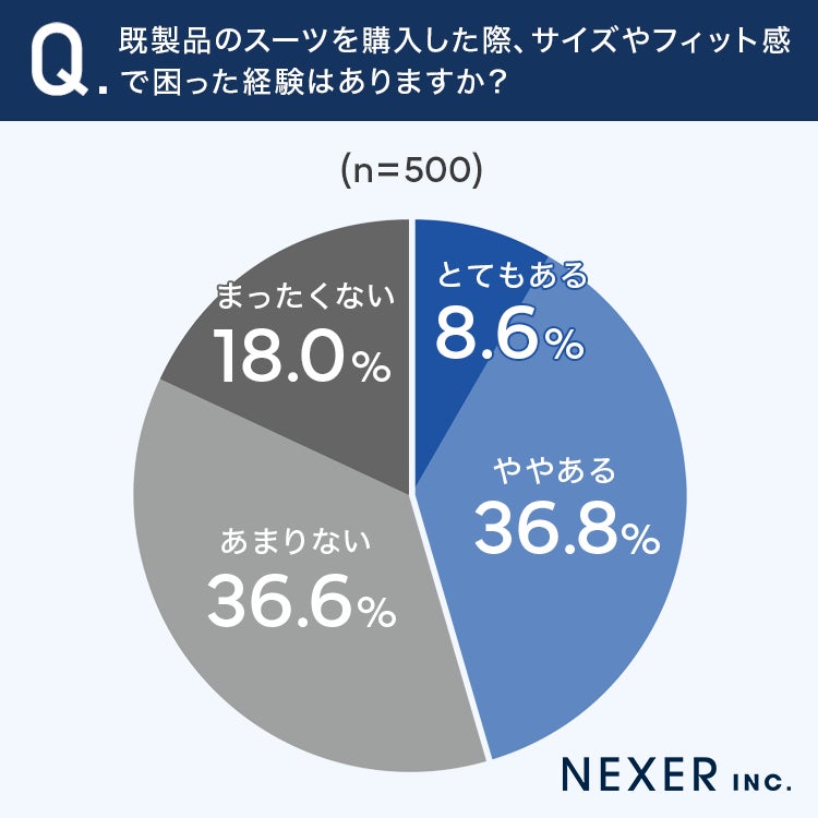 まず、既製品のスーツを購入した際にサイズやフィット感で困った経験があるかを調査しました。