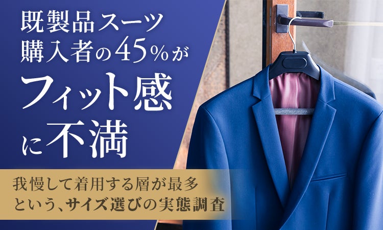 既製品スーツ購入者の45%が「フィット感」に不満。我慢して着用する層が最多という、サイズ選びの実態調査