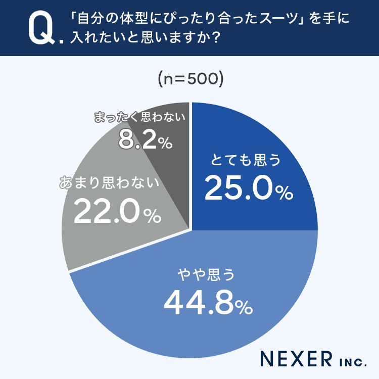 最後に「自分の体型にぴったり合ったスーツ」を手に入れたいと思うかを聞いてみました。