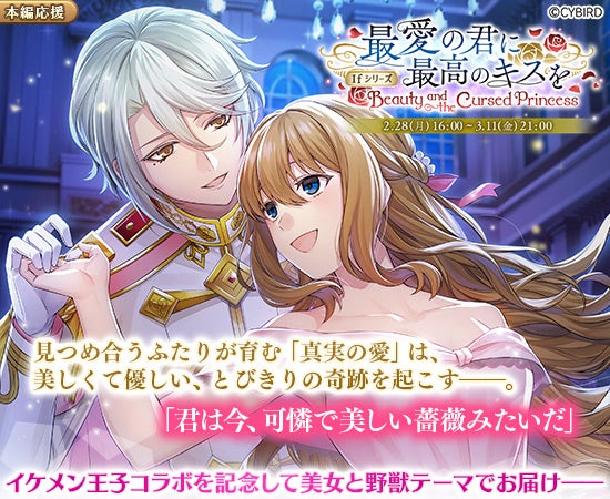 株式会社サイバード(本社:東京都渋谷区、代表取締役社長 兼 CEO 本島 匡、以下「サイバード」)は、全世界でのシリーズ累計会員数3,500万人を誇る女性向け恋愛ゲーム「イケメンシリーズ」の人気タイトル『イケメン革命◆アリスと恋の魔法』において、2022年2月28日(月)より、同シリーズの『イケメン王子 美女と野獣の最後の恋』とのコラボキャンペーンを開始します。