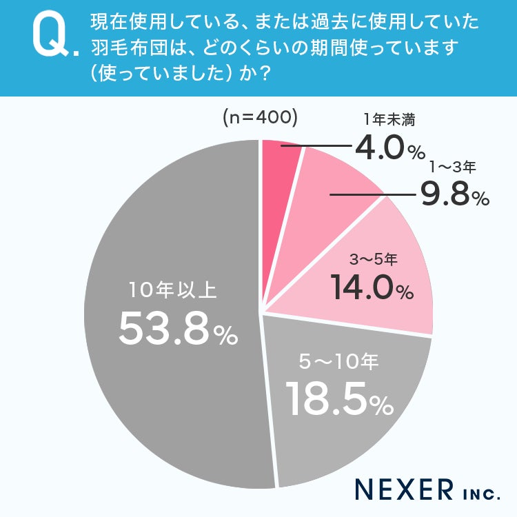 ■53.8%が、羽毛布団を「10年以上」使用