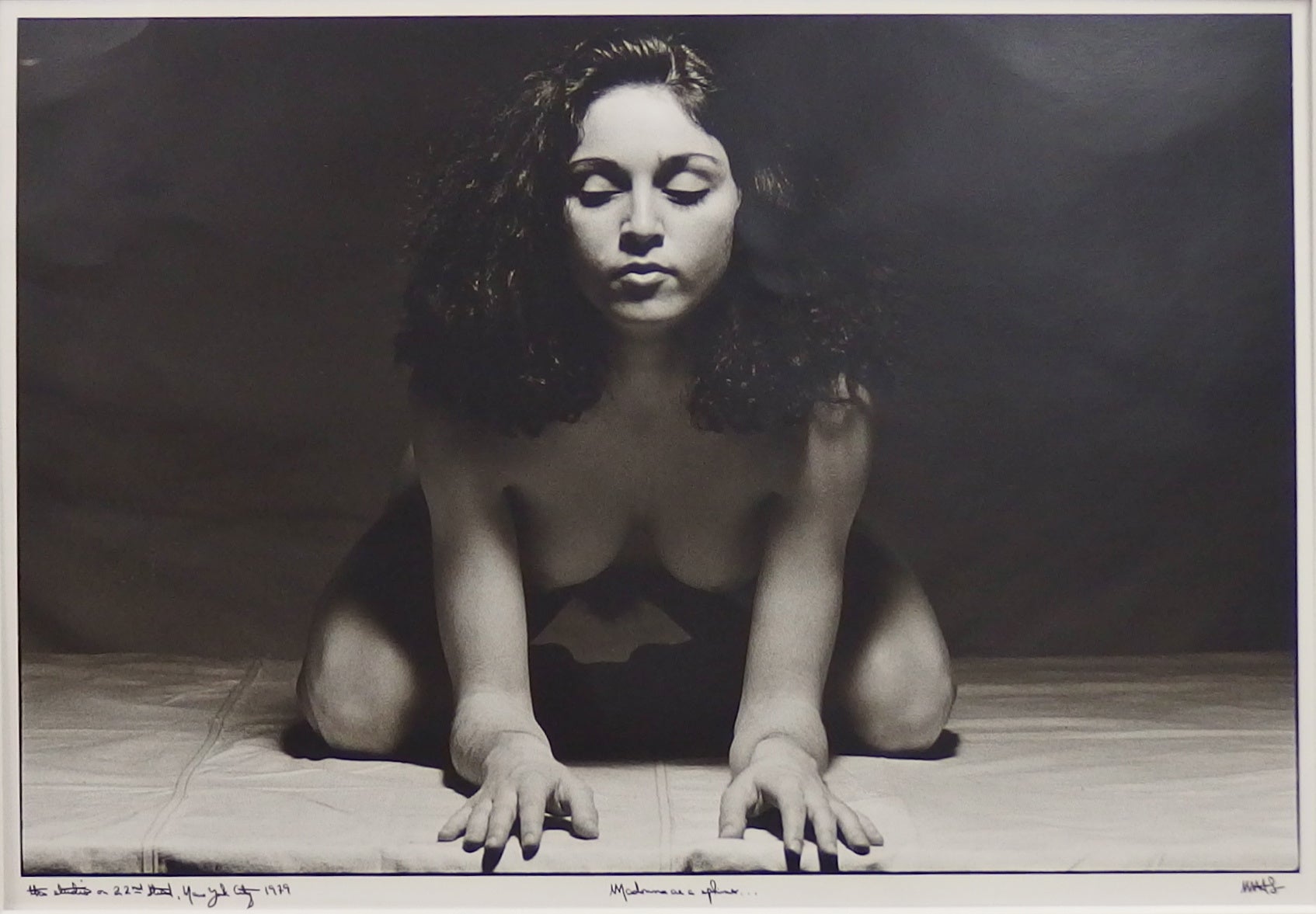 マリリンが亡くなる4年前に生まれ、「第二のマリリン」「マリリン・モンローの再来」と称されたマドンナ。今回展示される3点は、写真家マーティンH.M.シュレイバーによる、伝説のマドンナとなる前の貴重な写真です。1979年、当時21歳のマドンナは、ニューヨークの美術学校の写真モデルのバイトをしていました。ヌード写真の講師だったシュレイバーは、1985年に出版された雑誌『Time』表紙のマドンナを見て、6年前に撮った写真を『Playboy』に売り込み、そして一躍世界的に有名な写真家となりました。