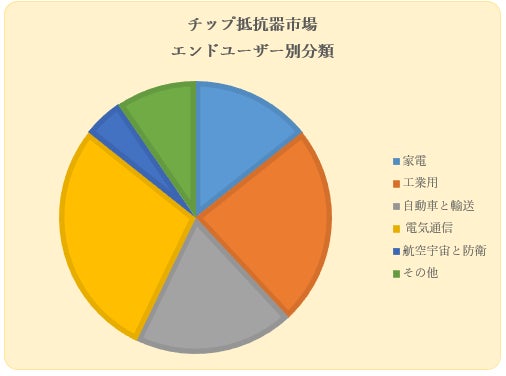 ただし、家電サブカテゴリの市場成長は最も速いと予想されます。 急速な成長は、民生用電子機器でのチップ抵抗器の適用によって促進されます。