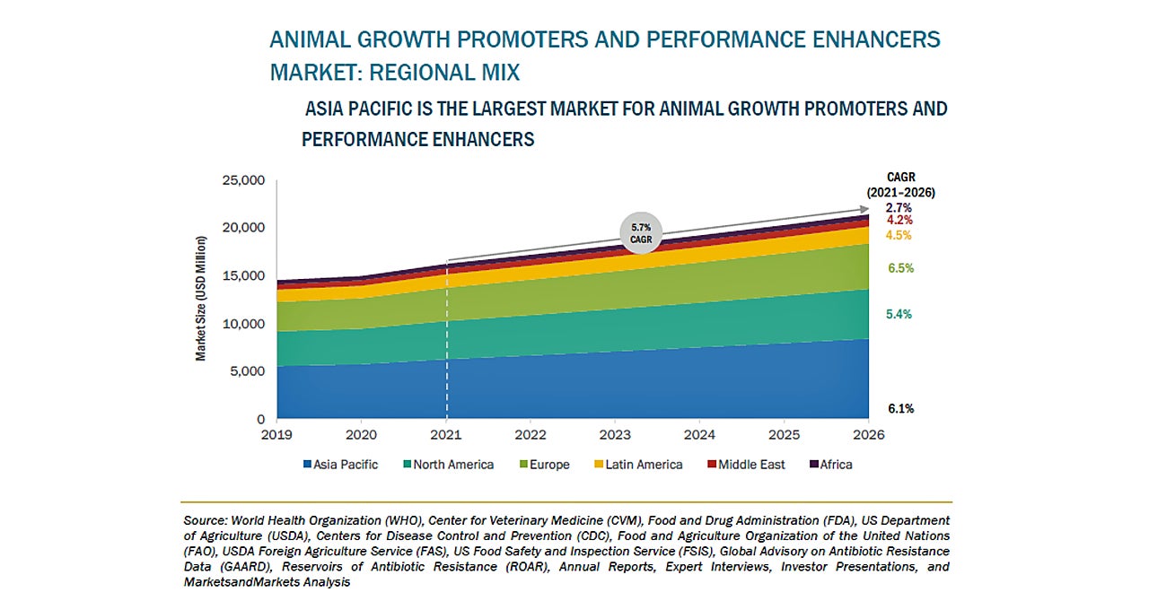 株式会社グローバルインフォメーションは、市場調査レポート「動物用成長促進剤および増強剤の世界市場 (~2026年):タイプ (抗生物質・非抗生物質 (ホルモン剤・酸性化剤・飼料用酵素・プロバイオティクス&プレバイオティクス・フィトジェニクス))・動物タイプ (家禽・豚・家畜・水生動物)・地域別」(MarketsandMarkets)の販売を12月27日より開始いたしました。