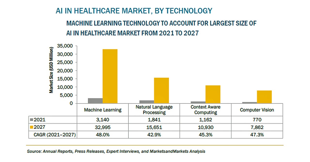 ヘルスケア分野向けAIの市場規模、2027年には674億米ドル到達予測