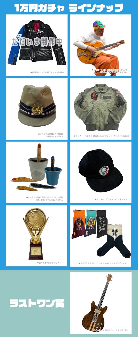 ※鋲ジャン、YouTube衣装、ギター(ラストワン賞)に関しては、展示が終了した後の発送とさせていただきます。