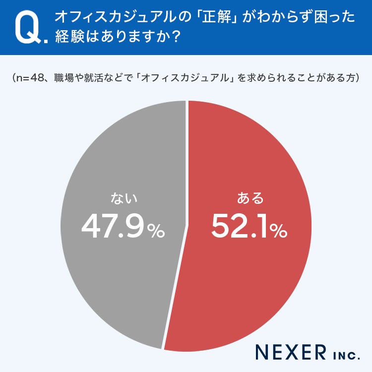 ■52.1%が、オフィスカジュアルの「正解がわからず困った経験がある」と回答