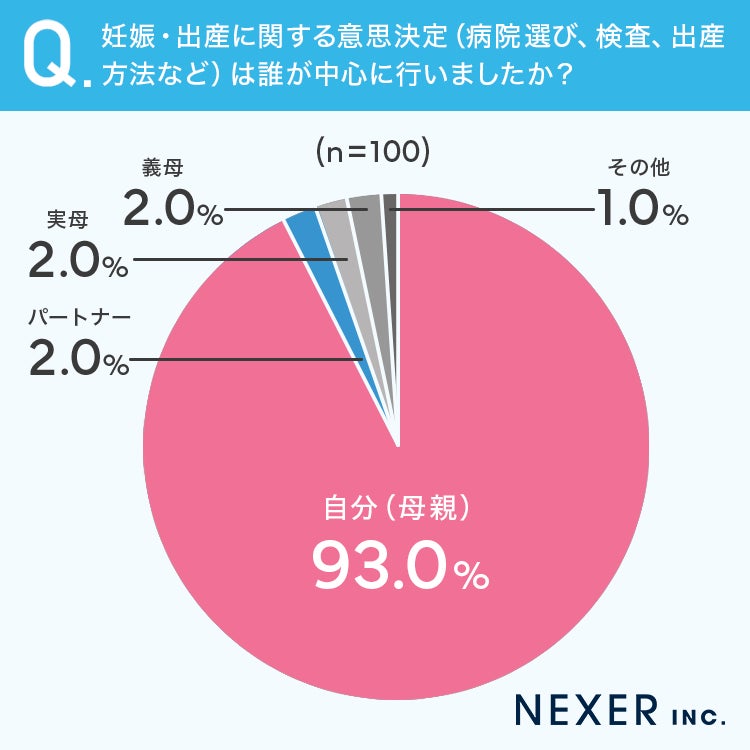 ■93.0%が妊娠・出産に関する意思決定を「自分(母親)」が中心に行ったと回答