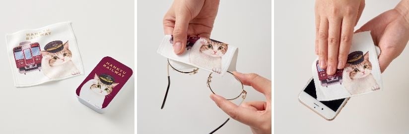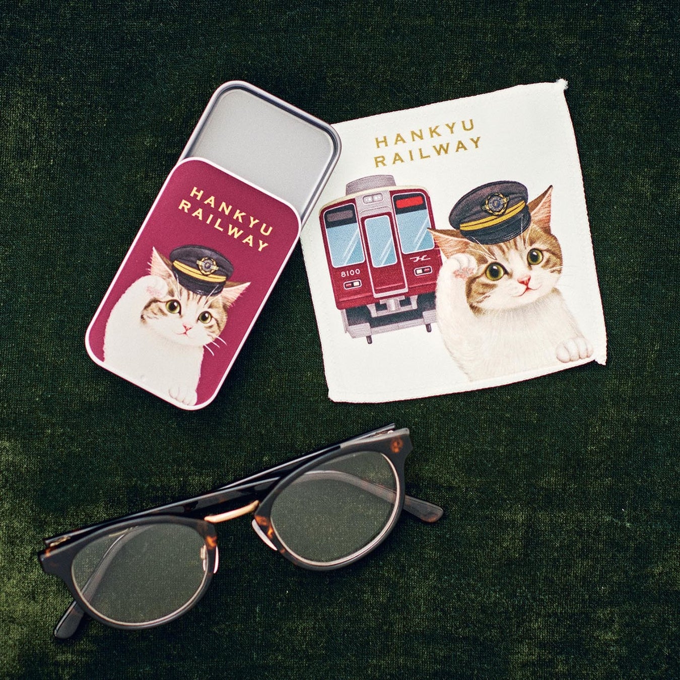 ■阪急電鉄×猫部 猫車掌さん缶入りめがねふき