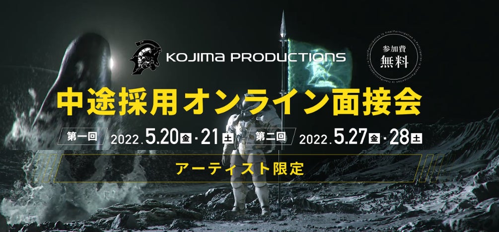 数々の名作を世に送り出し、世界的な支持を集めるゲームクリエイター・小島秀夫氏。そんな小島氏が設立したゲームスタジオ・株式会社コジマプロダクションは、独創的なクリエイティブ作品を通して世界中に感動を届けることをめざし、開発を行っています。現在、同社では、新規プロジェクト始動に伴い、キャラクターや背景、ライティングなどのアーティストを募集中。今回、中途採用オンライン面接会を開催することとなりました。