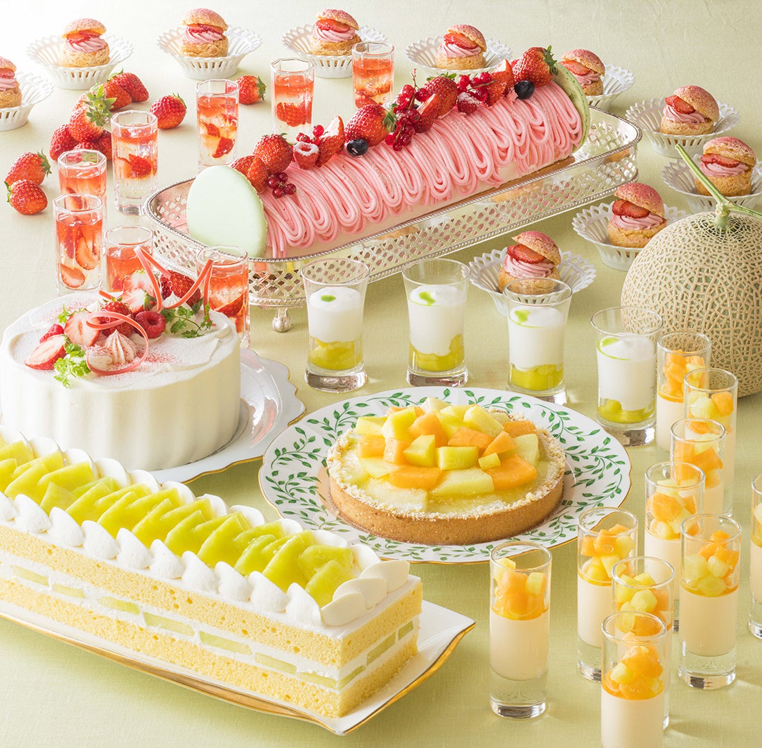 ケーキ(メロンショートケーキ / タルトメロン / いちごのモンブラン / シフォンケーキフレーズ / ロールメロン / タルトミルティーユ / シュークリームフレーズ など約12種)
