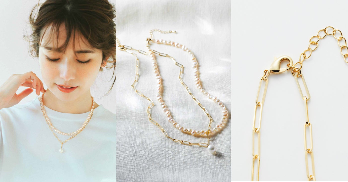 コーデが一気にあか抜ける、旬のパールネックレスの2点セットです。貴重な淡水バロックパールを連ねたネックレスは、抜け感のあるカジュアルコーデはもちろん、ちょっとかしこまったシーンにも活躍します。むずかしいレイヤードのバランスもセットなら迷いなく完璧に決まります。