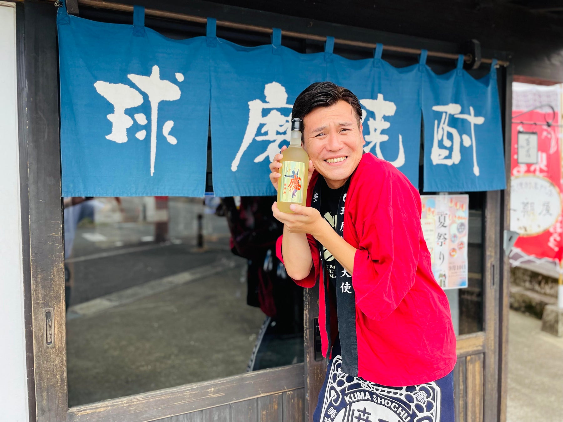 球磨焼酎オリジナルブレンド商品「感じる樽神輿イヤ~ん」が「人吉市ふるさと納税返礼品」の取り扱いになったことを記念して、発起人であり商品開発の中心となった、吉本興業所属で熊本県在住芸人である「安井政史」が、
