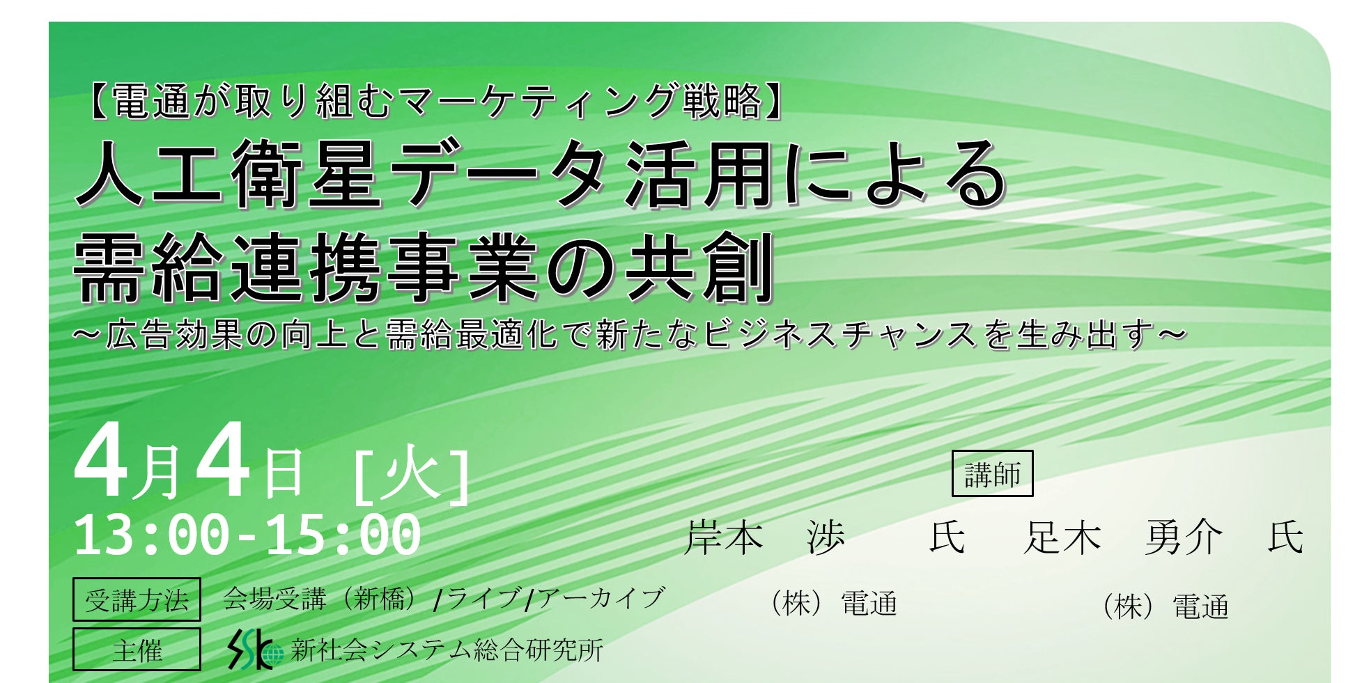 「人工衛星データ活用による需給連携事業の共創」と題して、(株)電通 ラジオテレビビジネスプロデュース局 岸本氏/足木氏によるセミナーを2023年4月4日(火)に開催!!