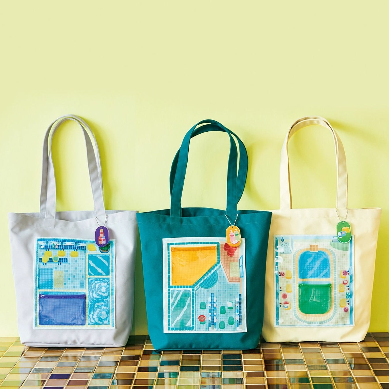 フェリシモが展開するユーモア雑貨ブランド「YOU+MORE!」は、「銭湯といっしょにお出かけ くすり湯のトートバッグ」のウェブ販売を3月18日より開始しています。レトロな銭湯のイラストが描かれた大きなポケットに、くすり湯をイメージしたカラフルなクリアポケットが付いたトートバッグです。撥水生地の本体がちょっとした水を弾いてくれるので、タオルや着替えを入れてサウナや銭湯、スポーツジムなど、毎日のお出かけにも重宝します。A4サイズがすっぽり収まる大きさでまち付きだから、荷物がたっぷり入ります。デザインは〈ラベンダー湯〉〈ゆず湯〉〈アロエ湯〉の3種類のお風呂です。リバーシブル仕様のレトロなキーホルダーがそれぞれのトートバッグに付いていて、クリアポケットに差し込むと、イラストに描かれたキャラクターが入浴中になる仕掛けも楽しめます。持っているだけで楽しい気分になれそうなレトロかわいい銭湯のトートバッグで、ごきげんな毎日が過ごせます。