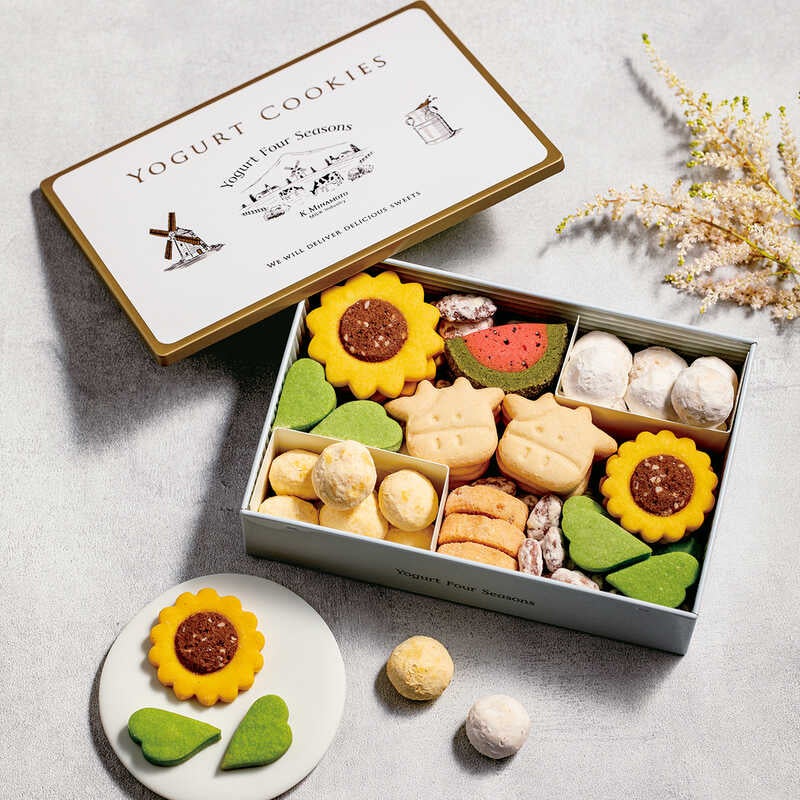 甘酸っぱい味がシュワッと広がり、食感はしっとり。ヨーグルトやホエイなど、ナッツ、ごまといった素材を巧みにミックスした8種のクッキーをぎゅっと詰めました。素材の良さを生かしたさっぱりテイストに思わずにっこり。