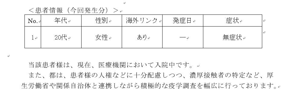 この度、東京都健康安全研究センターにおいて、変異株PCR検査でオミクロン株疑いが確認され、ゲノム解析を行った結果、下記のとおり、オミクロン株が判明したので、お知らせします。