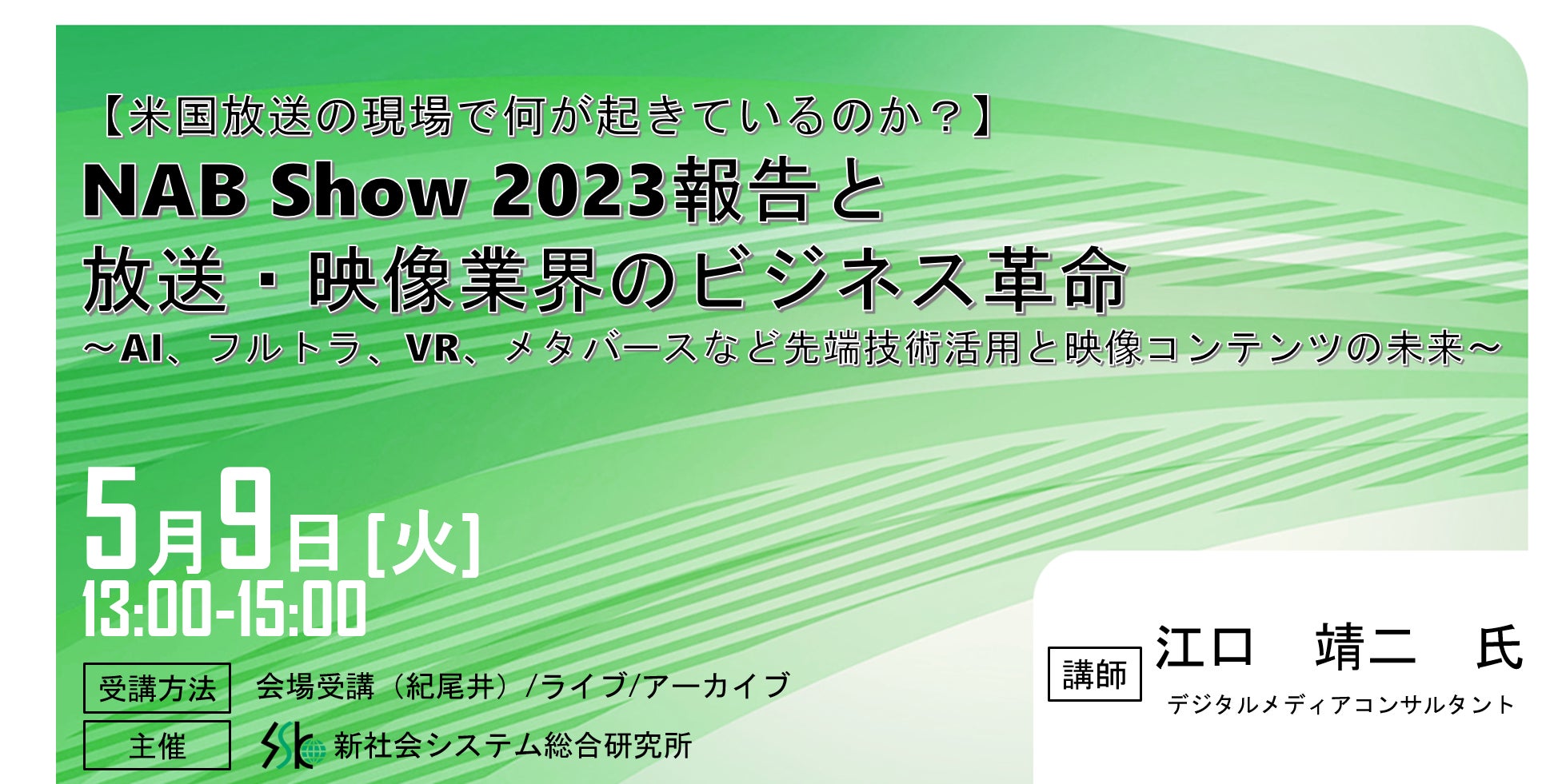 「NAB Show 2023報告と放送・映像業界のビジネス革命」と題して、デジタルメディアコンサルタント 江口 靖二氏によるセミナーを2023年5月19日(金)に開催!!