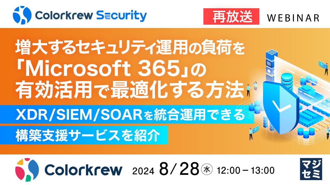 マジセミ株式会社は、大変好評をいただいた「【再放送】増大するセキュリティ運用の負荷を「Microsoft365」の有効活用で最適化する方法」というテーマのウェビナーを再放送します。