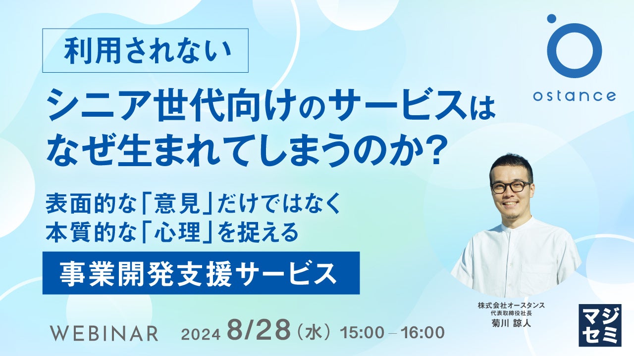 マジセミ株式会社は「「利用されない」シニア世代向けのサービスはなぜ生まれてしまうのか?」というテーマのウェビナーを開催します。
