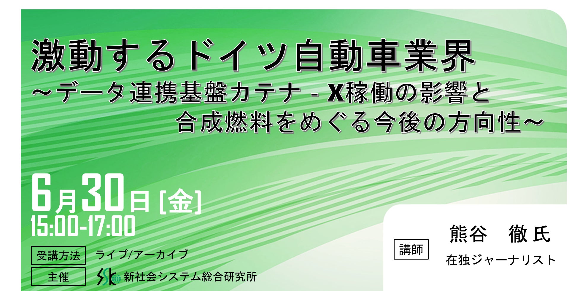 「激動するドイツ自動車業界」と題して、在独ジャーナリスト 熊谷 徹氏によるセミナーを2023年6月30日(金)に開催!!