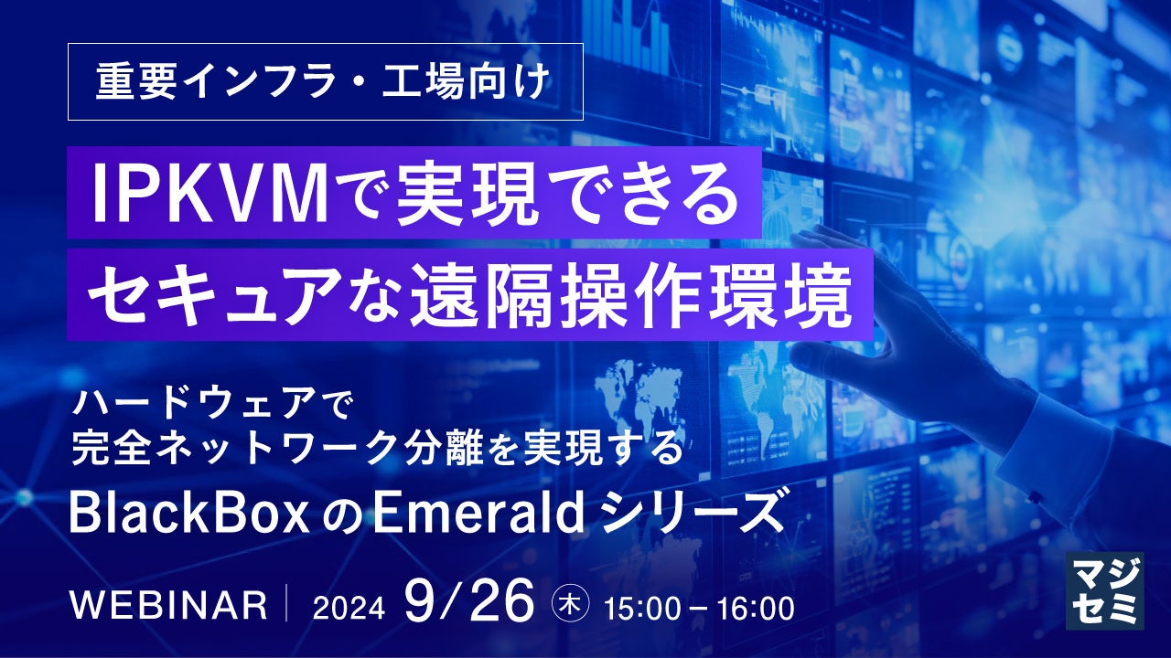 マジセミ株式会社は「【重要インフラ・工場向け】IPKVMで実現できるセキュアな遠隔操作環境」というテーマのウェビナーを開催します。