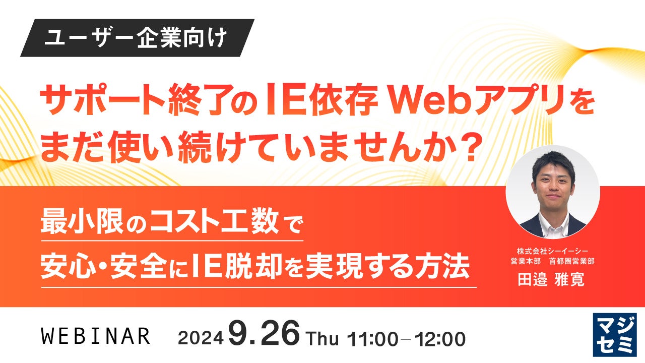 マジセミ株式会社は「【ユーザー企業向け】サポート終了のIE依存Webアプリをまだ使い続けていませんか?」というテーマのウェビナーを開催します。