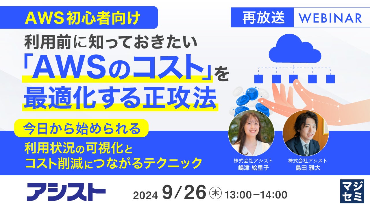 マジセミ株式会社は、大変好評をいただいた「【再放送】【AWS初心者向け】利用前に知っておきたい「AWSのコスト」を最適化する正攻法」というテーマのウェビナーを再放送します。
