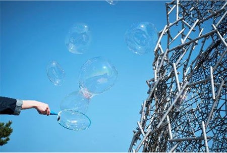 シャボン玉アーティスト・杉山兄弟監修のシャボン玉広場。さまざまな道具を使ってシャボン玉で遊ぶことができる。六甲山の上で、子どもから大人までシャボン玉の魅力に触れてみてください(雨天・荒天時は展示中止。対象年齢:4歳以上)。