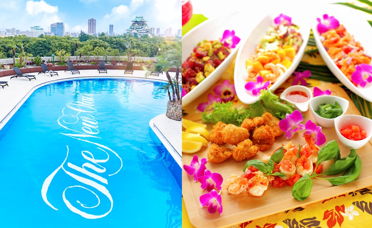 ホテルニューオータニ大阪は、2024年5月3日(金・祝)~5日(日)の3日間限定で、市内随一の絶景を誇るプールサイドダイニング「THE TERRACE」にて、ハワイがテーマのホテルグルメやフラ&タヒチアンショーが愉しめるランチビュッフェを開催します。(大人1ドリンク付き ¥7,800/小学生1ドリンク付き ¥5,000/4歳以上 ¥3,000)