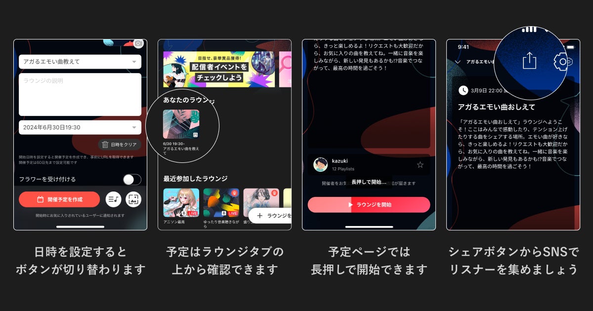 ラウンジに開催予定の作成機能が追加!事前にリスナーへラウンジURLのシェアが可能に