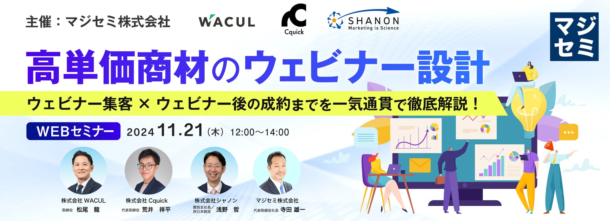 マジセミ株式会社は「高単価商材のウェビナー設計」というテーマのウェビナーを開催します。