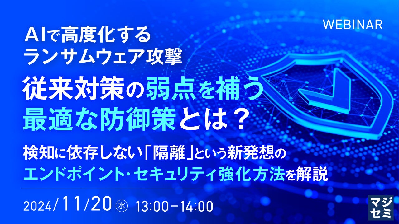 マジセミ株式会社は「AIで高度化するランサムウェア攻撃、従来対策の弱点を補う最適な防御策とは?」というテーマのウェビナーを開催します。