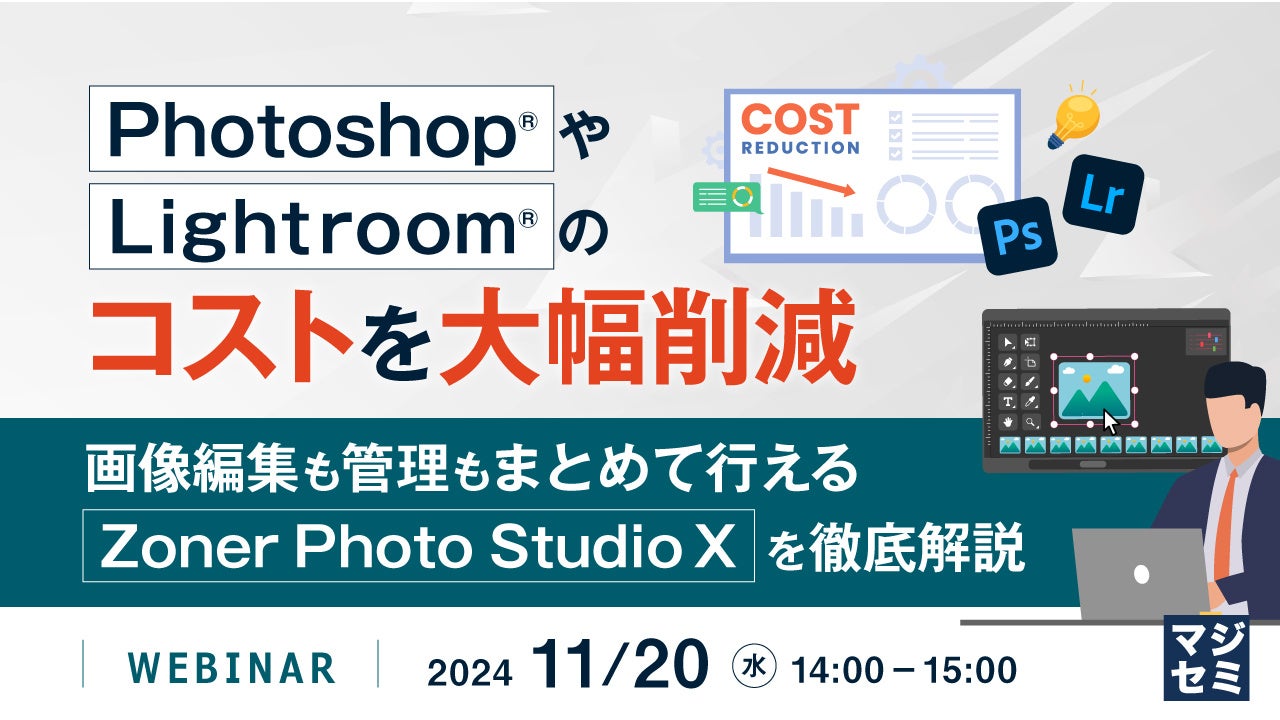 マジセミ株式会社は「Photoshop®やLightroom®のコストを大幅削減」というテーマのウェビナーを開催します。