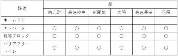【神戸高速線の主なバリアフリー設備の整備状況】