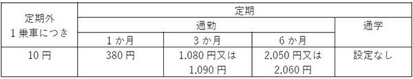 【料金設定後の運賃(大人)】(単位:円)