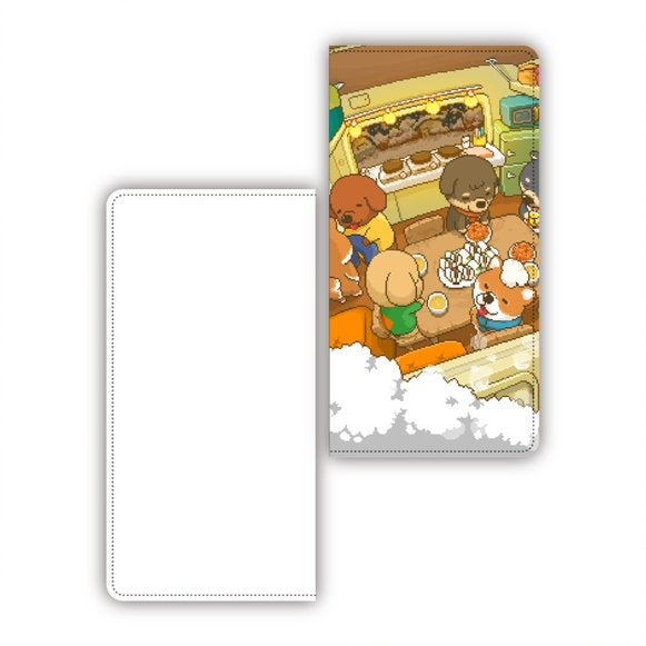 ■【柴犬のクレープ屋さん / Food Truck Pup】スライド式手帳型スマホケース ¥1,650(税込)