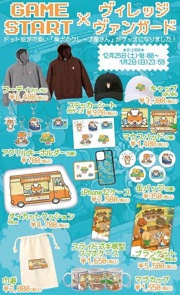 【柴犬のクレープ屋さん×ヴィレッジヴァンガードコラボグッズ販売決定!】~可愛くて癒されると海外でも大人気のドット絵ゲーム初のグッズ化!~