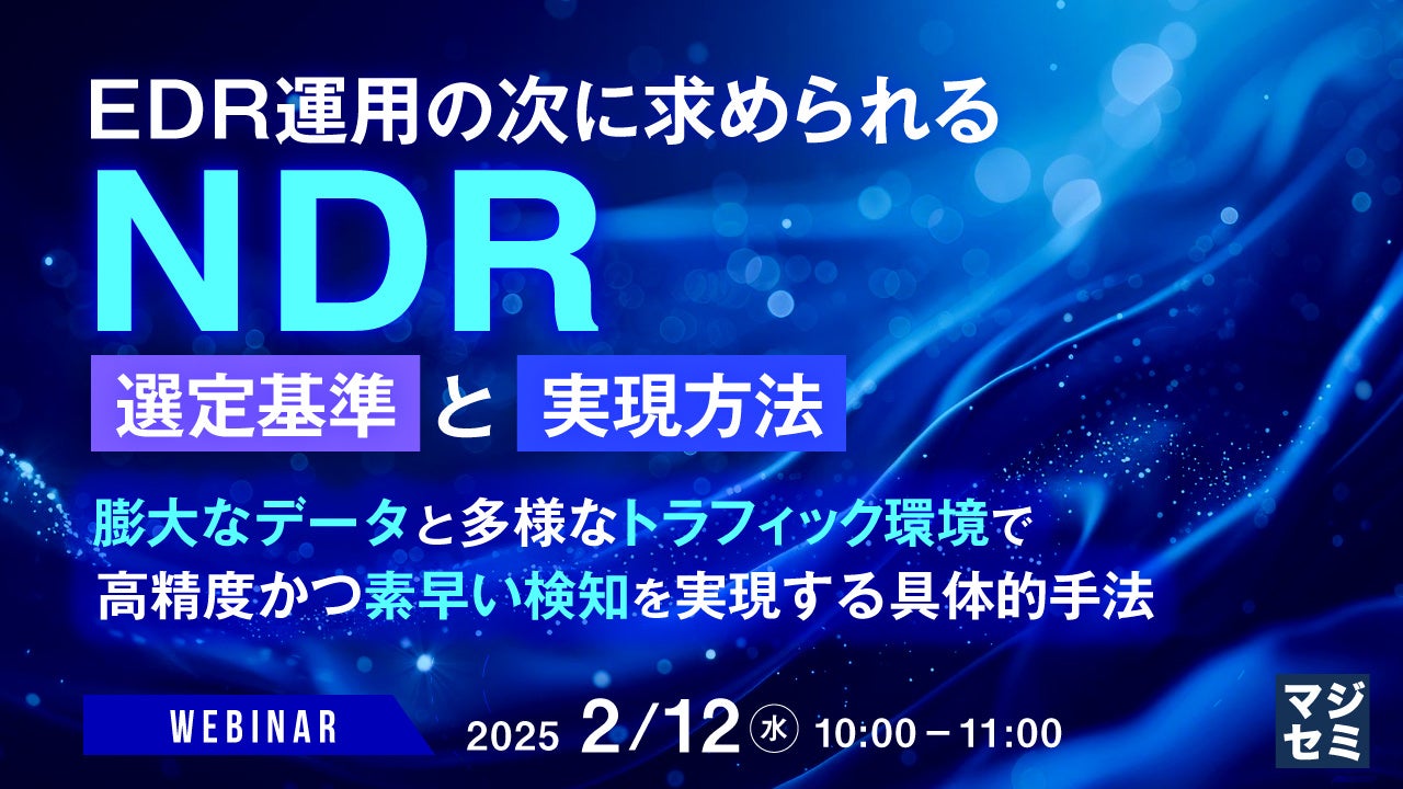 マジセミ株式会社は「EDR運用の次に求められるNDR:選定基準と実現方法」というテーマのウェビナーを開催します。