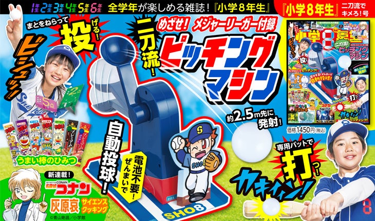 そんな小8の最新号付録は「二刀流!ピッチングマシン」!投打どちらも楽しめる付録です。「家庭用ピッチングマシン」と聞けば懐かしく思う方もいらっしゃるのでは?今号も小8は要チェックです!