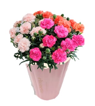 1鉢で3色(3株)楽しめる、贅沢なカーネーションです。丸みのある優雅なイオン限定の鉢カバー入りです。