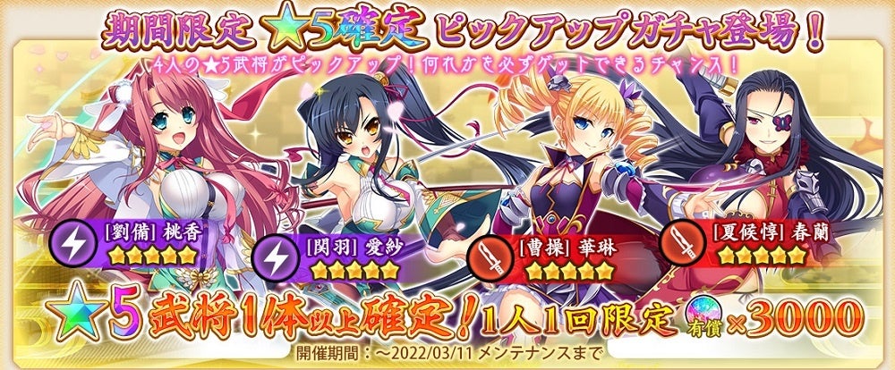 ▼期間限定『恋姫†夢想・参コラボイベント』ピックアップ前半ガチャ開催中!