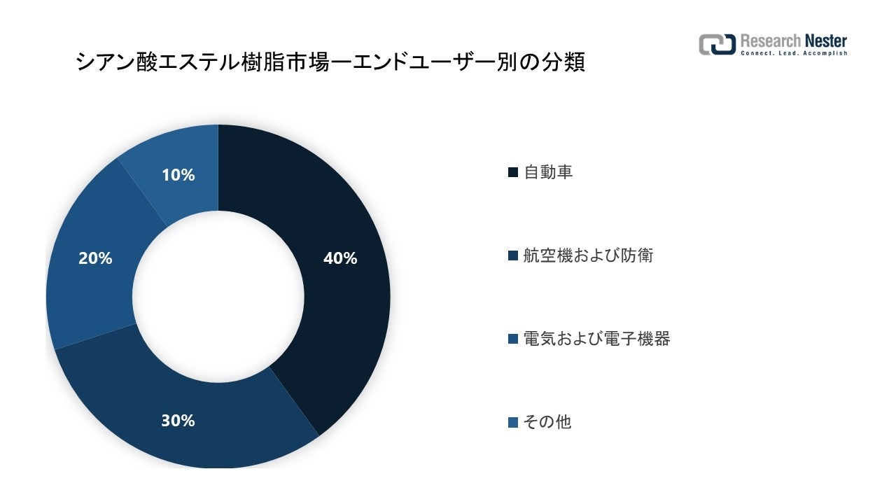 エンドユーザーに基づいて、自動車セグメントは 2035 年に約 38% の大きなシェアを獲得すると予想されています。セグメントの成長の主な要因は、効率的な車両にシアネート エステル樹脂を必要とするコネクテッド カーや自動運転車への嗜好の高まりとともに、自動車産業の開花です。たとえば、2025 年までに、世界の道路上には約 470百万台のコネクテッド カーが存在すると推定されています。また、シアン酸エステル樹脂を使用することで、スチールに比べて車両全体の軽量化と耐久性の向上に貢献しています。したがって、自動車に対する最近の高い需要は、車両に余分な保護層を提供するためのシアン酸エステル樹脂の需要を増加させると予想されます。世界の自動車販売台数は、2021 年の約 66百万台から、2022 年には約 67百万台に増加しました。