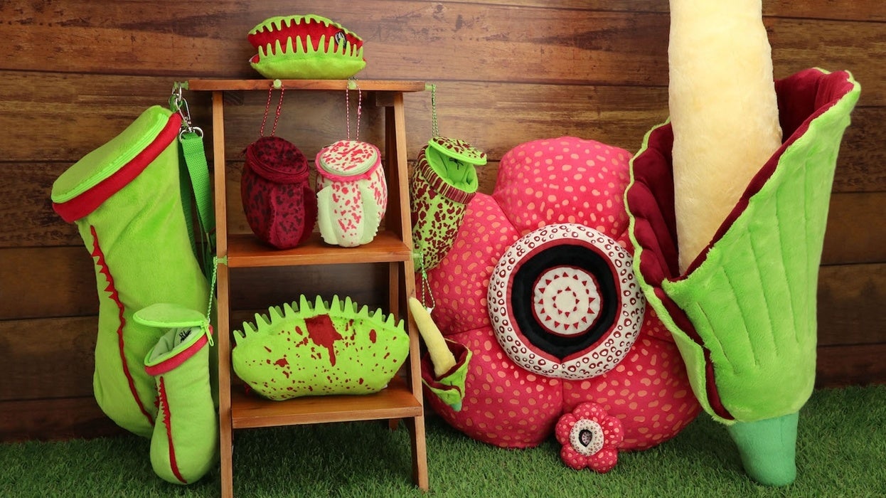 ラフレシア、ウツボカズラ、ハエトリソウ、ショクダイオオコンニャクなどのぬいぐるみをはじめ、