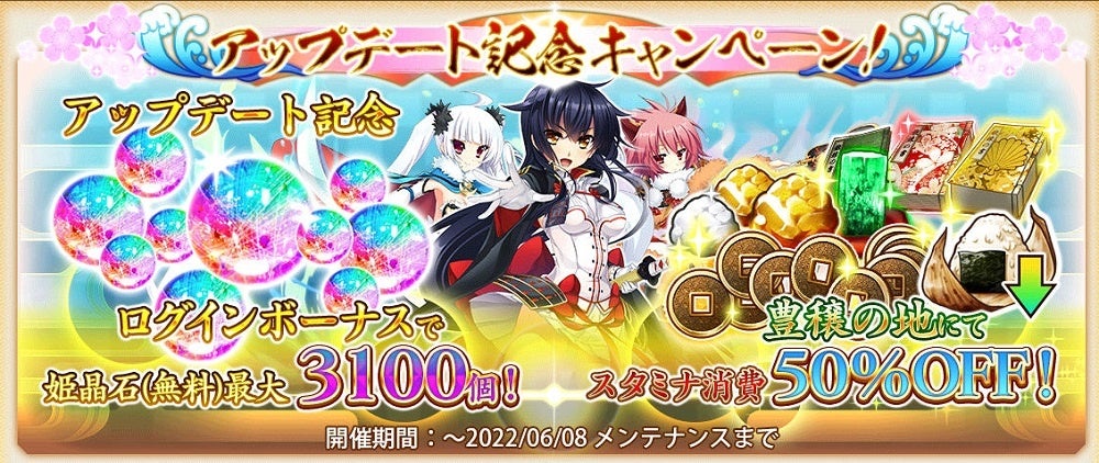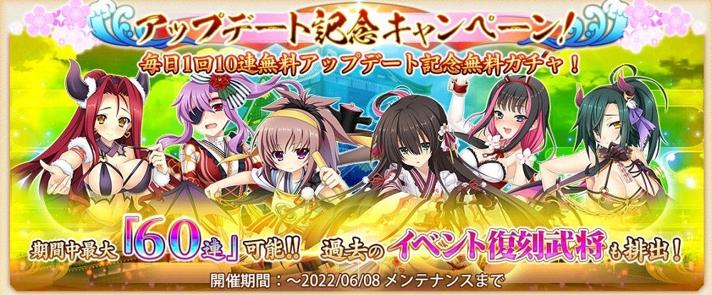 DMM GAMES『戦国†恋姫オンライン ~奥宴新史~』にて初の大型アップデート開催!また記念キャンペーンでは毎日無料ガチャやログボなど豪華報酬がもらえる『アップデート記念キャンペーン』を開催!!