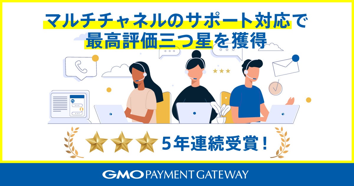 5年連続での三つ星獲得と、この度の電話・メール・チャットツール全ての対応におけるマルチチャネルでの評価は、それぞれ決済代行業界では初となります。