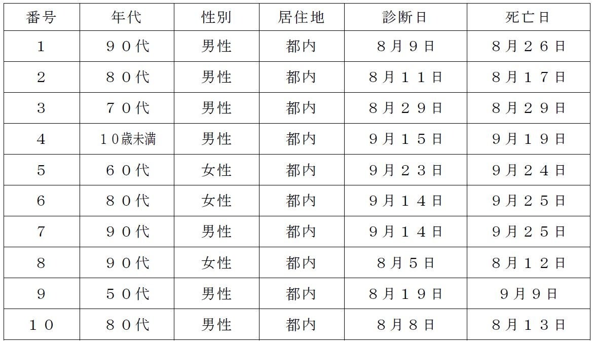 都内で新型コロナウイルスに感染した方が死亡されましたのでお知らせします。