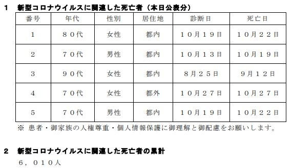 都内で新型コロナウイルスに感染した方が死亡されましたのでお知らせします。