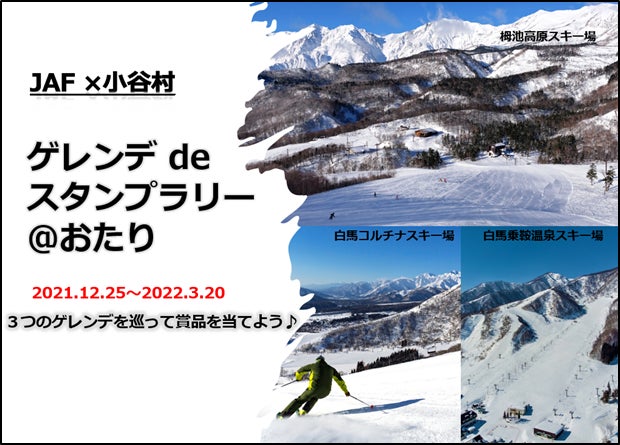 JAF(一般社団法人 日本自動車連盟)長野支部(支部長 宇都宮進一)と一般社団法人小谷村観光連盟(代表理事 中村義明)は、12月25日より「ゲレンデde スタンプラリー@おたり」を開催します。